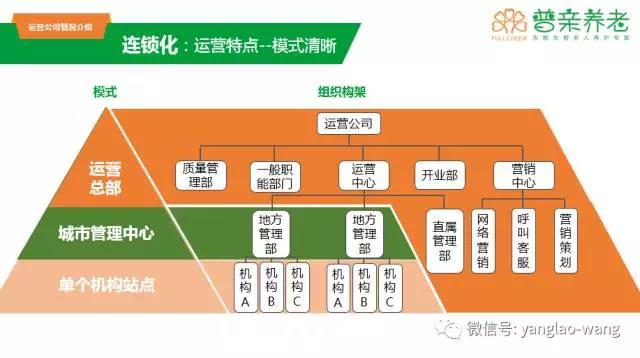 普親運營模式清晰,分三級管理模式,以總部為中心,分級管理城市的管理中心和單個機構站點。與之相配,有一個完整的組織架構。在運營總部設有質量管理部和一般職能部門,還有專門的開業(yè)部。