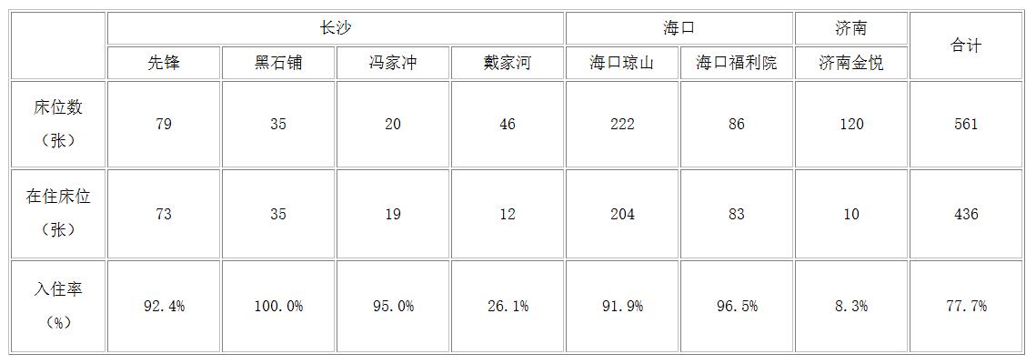 普親現(xiàn)已投入運營的機構(gòu)7家,分別為長沙4家、�?�2家、濟南1家,合計床位數(shù)561張。