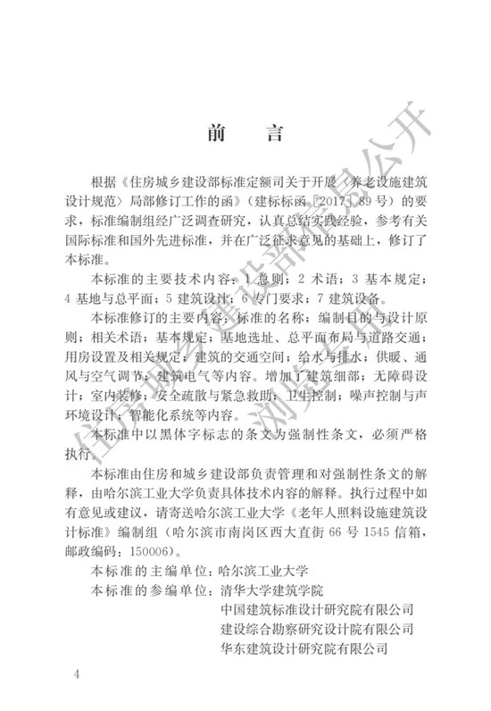 現(xiàn)批準(zhǔn)《老年人照料設(shè)施建筑設(shè)計(jì)標(biāo)準(zhǔn)》為行業(yè)標(biāo)準(zhǔn),編號為JGJ450-2018,自2018年10月1日起實(shí)施。其中,第4.2.4、5.1.2、5.6.4、5.6.6、6.5.3、7.2.5條為強(qiáng)制性條文,必須嚴(yán)格執(zhí)行。原國家標(biāo)準(zhǔn)《養(yǎng)老設(shè)施建筑設(shè)計(jì)規(guī)范》GB50867-2013和《老年人居住建筑設(shè)計(jì)規(guī)范》GB50340-2016同時(shí)廢止。