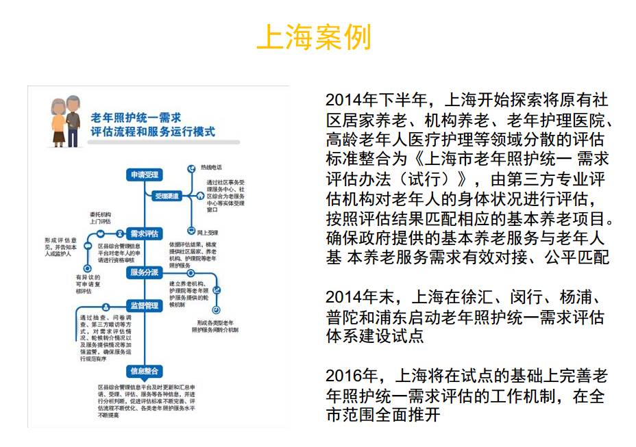 這里講的是需要有這樣的評(píng)估,如果真要做這個(gè)評(píng)估,是怎么做的呢?上海的做法是搞一個(gè)復(fù)雜式的全面摸底的方法,其實(shí)那是費(fèi)時(shí)費(fèi)力的事,而且花的時(shí)間特別長(zhǎng)。如果我們換一個(gè)角度思維,如果你有這一套機(jī)制建立起來以后,實(shí)際上是一個(gè)申請(qǐng)的過程,當(dāng)然在這個(gè)之前要告知他,告訴所有人,你有這方面的需要,提出申請(qǐng),然后我政府部門負(fù)責(zé)給你梳理,在這個(gè)過程當(dāng)中,我有一系列的量表給你進(jìn)行評(píng)估,評(píng)估以后我再定義看你是不是合乎資格的,這樣一個(gè)過程。