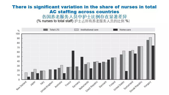 在OECD國(guó)家中,養(yǎng)老服務(wù)人員護(hù)士比例差別是很大的,比如新西蘭的比例就很低,而東歐國(guó)家相對(duì)比例就比較高。從OECD國(guó)家來看,它沒有一個(gè)標(biāo)準(zhǔn)的模式,在中國(guó)也是一樣,各個(gè)地方怎么做差別都是很大的,都是根據(jù)自己的條件來做的。
