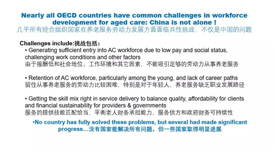 幾乎所有OECD國(guó)家在養(yǎng)老人才隊(duì)伍發(fā)展方面都面臨共同挑戰(zhàn),中國(guó)也一樣。