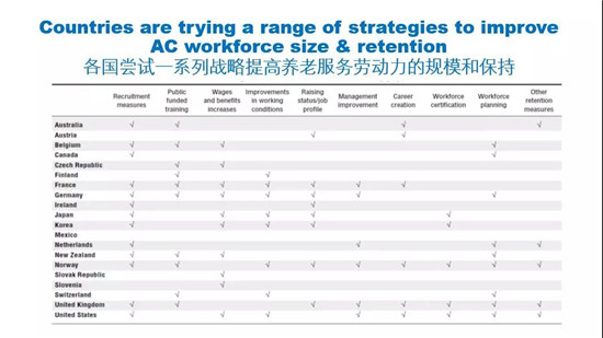 各國(guó)嘗試一系列戰(zhàn)略提高養(yǎng)老服務(wù)勞動(dòng)力的規(guī)模和保持。