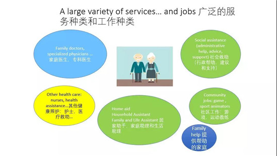 下面介紹法國(guó)案例。從法國(guó)來看,養(yǎng)老服務(wù)業(yè)的職業(yè)種類非常多,不單純就是護(hù)理崗位,因?yàn)轲B(yǎng)老照護(hù)涉及的面非常大,牽涉到的工作性質(zhì)和工作種類是非常復(fù)雜的。法國(guó)有一系列培訓(xùn)方面的安排,有一個(gè)專業(yè)化的訓(xùn)練,而且是把培訓(xùn)與就業(yè)直接聯(lián)系起來。