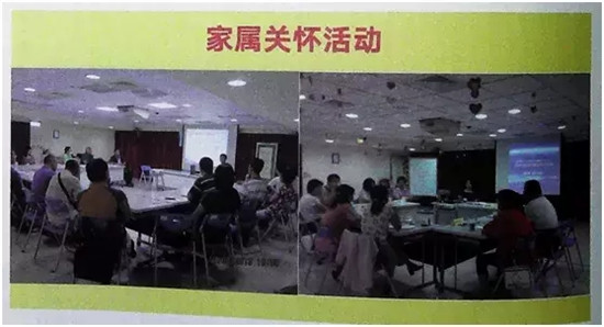 除了照護老人,還有針對家屬的系列活動。養(yǎng)護中心會定期舉辦家屬座談會,針對長輩在中心里的情況,通過座談會的形式進行團體分享。這個過程中會告訴家人養(yǎng)護中心的整個照顧目標,以及需要他們一起努力的部分,希望營造一個家庭式的環(huán)境。養(yǎng)護中心每個禮拜六會在日間照護中心做一個開放的活動,有很多社區(qū)的家屬參加,一起互動。