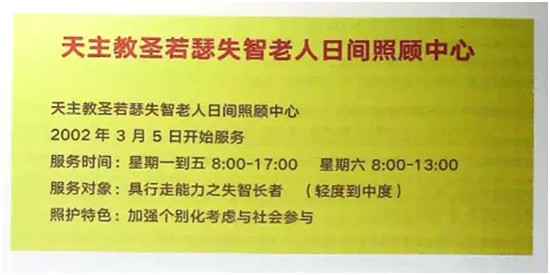 圣若瑟失智老人日間照顧中心于2002年3月份開始提供服務(wù)。從周一到周五白天的時間,加上周六半天,針對比較輕度的失智癥老人進行服務(wù)。