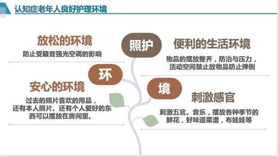 3,提供適當(dāng)?shù)沫h(huán)境刺激,包括運(yùn)用適當(dāng)?shù)纳�、景觀、老人熟悉的物件等激發(fā)老人的興趣和好奇心,但是要避免刺激老人產(chǎn)生幻聽、幻視等環(huán)境設(shè)計(jì),減少老人攻擊性行為的發(fā)生;