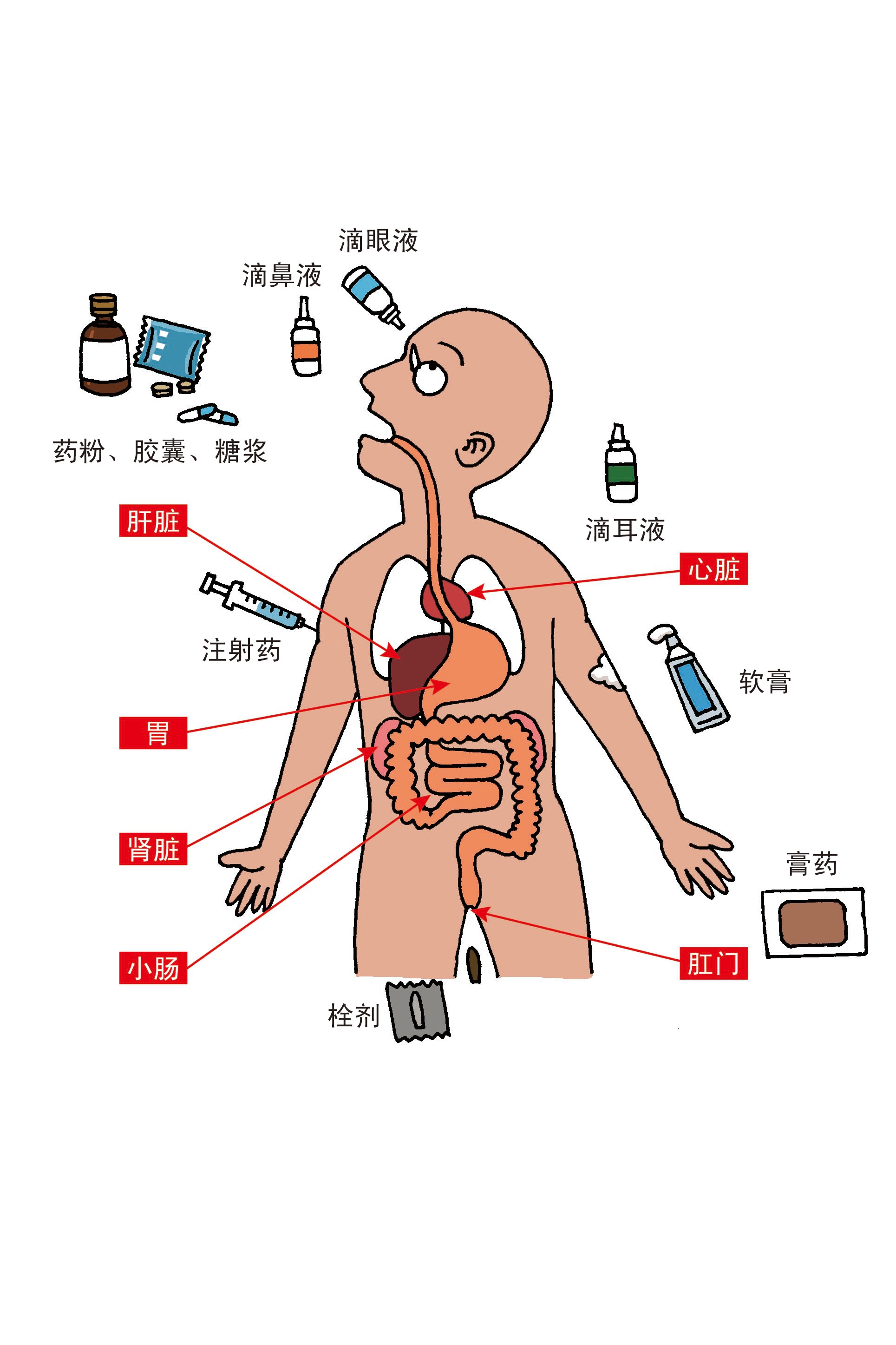 | 經(jīng)由口腔入胃,通過小腸吸收進入血液;之后再經(jīng)由肝臟到達心臟,進而散步全身。藥物在體內(nèi)循環(huán)后再次循環(huán)回肝臟被分解,和大便或尿液一起排出體外。 |