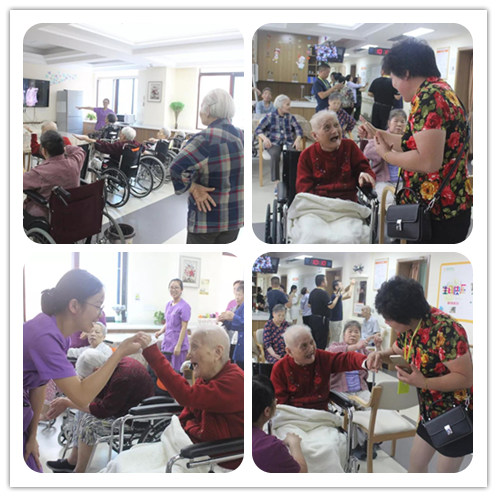 長(zhǎng)者們正在護(hù)理員的帶領(lǐng)下做健身操,養(yǎng)老機(jī)構(gòu)院長(zhǎng)們也加入了健身操的隊(duì)伍,和入住長(zhǎng)者進(jìn)行了熱烈的互動(dòng)。