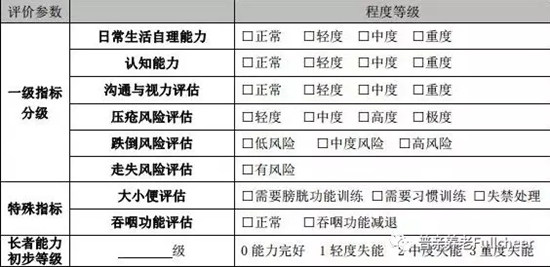 生活能力評(píng)估包括吃飯、大小便、穿衣等日常生活內(nèi)容,判斷老人能不能自己完成,自己有沒(méi)有感知。我們也會(huì)通過(guò)對(duì)老人的直觀感覺(jué)和家屬提供的信息來(lái)進(jìn)行判斷老人的溝通與視聽(tīng)力能力。