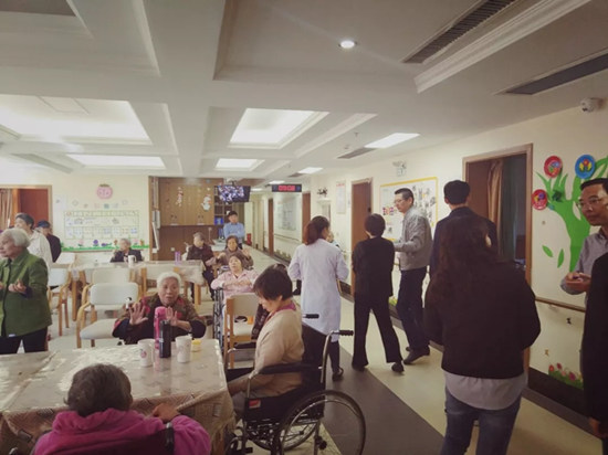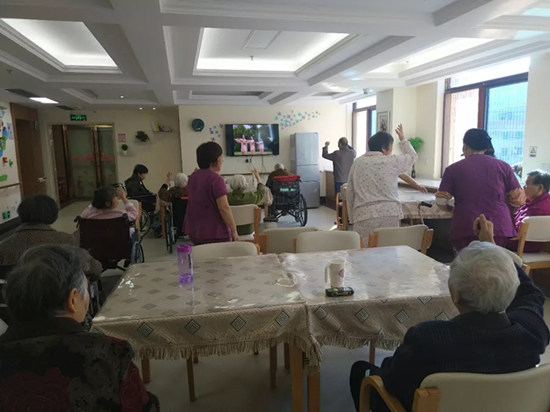 此時(shí)正值上午,養(yǎng)護(hù)院呈現(xiàn)出一派舒適景象:富有特色的環(huán)創(chuàng)設(shè)計(jì),干凈整潔的長者居室,沒有異味的洗漱間和衛(wèi)浴間,和煦的陽光照進(jìn)活動(dòng)室,不少長者在護(hù)理員的帶領(lǐng)下正在做操。精神奕奕、有說有笑的長者給調(diào)研團(tuán)留下了深刻印象。