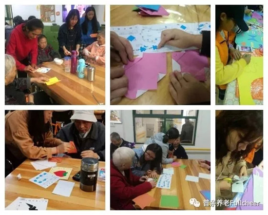 這些同學(xué)們一定都是心靈手巧的好青年。他們主動(dòng)教爺爺奶奶做手工折紙,看,爺爺在護(hù)理員的協(xié)助下折出的這只呆萌小熊貓,看著還挺像的呢。志愿者們還幫助咱們機(jī)構(gòu)做溫馨提示牌,你們的愛(ài)心爺爺奶奶已經(jīng)收到啦!
