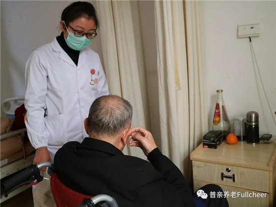 住在普親先鋒四樓的一位老人,“剛?cè)胱r(shí)情況非常糟糕,臥床,無法交流,多種疾病(糖尿病、高血壓、腦梗后遺癥,還引起了抑郁癥)傍身,加上家屬照顧時(shí)的不專業(yè),飲食、藥品的攝入不規(guī)范,血壓、血糖沒有得到控制,直接影響了老人的評估結(jié)果�!�