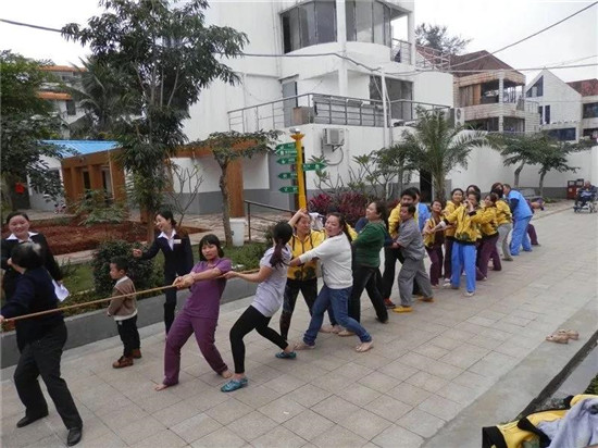 ▲2014年,海口市普親老年養(yǎng)護(hù)院護(hù)理團(tuán)隊(duì)進(jìn)行拔河比賽。