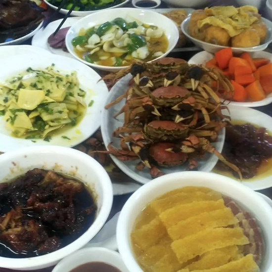 豐盛可口的飯菜擺滿一桌,各位老人們圍坐桌旁,共吃團圓飯;老人們既是享受美味可口的菜肴,亦是享受歡聚一堂的氣氛。