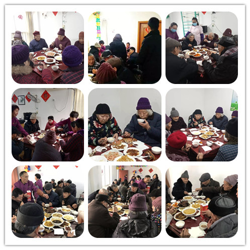 經(jīng)過大家的共同努力,一道道美味佳肴上桌啦,騰騰的熱氣,誘人的美食,老人臉上洋溢的笑容,共同組成了其樂融融、歡聚一堂的景象,紅紅火火,熱熱鬧鬧,歡度新年。