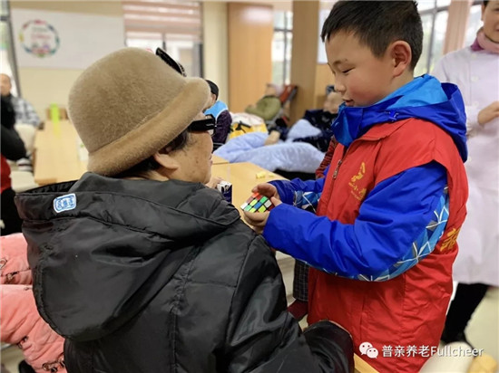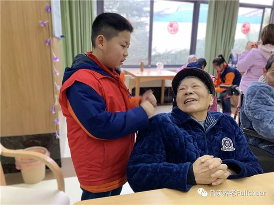 老人與小孩,他們之間似乎有種天然的親近。普親養(yǎng)老院雖然沒有與幼兒園設(shè)在一起,但養(yǎng)老院里卻并不缺少孩子們的歡聲笑語,不管是平時還是節(jié)假日,在機構(gòu)經(jīng)�?梢娦∨笥褌兊纳碛�,他們帶給了老人很多歡樂,也讓大家開始思考,老人需要的是怎樣的陪伴。