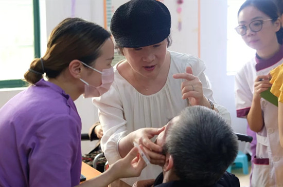 6月2日,在普親董事長(zhǎng)唐文湘的陪同下,趙月紅女士先后參觀了普親先鋒社區(qū)老年養(yǎng)護(hù)中心、普親老年養(yǎng)護(hù)院,詳細(xì)地了解了機(jī)構(gòu)的服務(wù)流程、老年人能力評(píng)估、服務(wù)質(zhì)量管理等情況,并與機(jī)構(gòu)的站院長(zhǎng)、醫(yī)生、護(hù)士及入住的長(zhǎng)者進(jìn)行了深入的交流,并在服務(wù)現(xiàn)場(chǎng)對(duì)認(rèn)知癥老人的照護(hù)進(jìn)行了專業(yè)指導(dǎo),對(duì)護(hù)理員們拋出的照護(hù)難點(diǎn)答疑解惑。