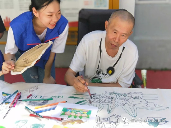 端午佳節(jié),海口市普親第一老年養(yǎng)護(hù)院除了為爺爺奶奶們準(zhǔn)備豐盛的節(jié)日大餐,還策劃開展了“縱情端午,快樂頑童”端午節(jié)主題活動(dòng)�;顒�(dòng)分為了端午節(jié)主題繪畫及康樂游戲比賽兩個(gè)環(huán)節(jié),主題繪畫包含了繪龍舟、粽子、屈原、端午風(fēng)俗四大元素,老人們與志愿者分工合作,蔡爺爺扎實(shí)的繪描功底、嫻熟的上色技巧,不出意料收獲了大家的稱贊。