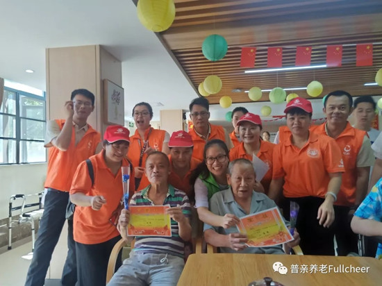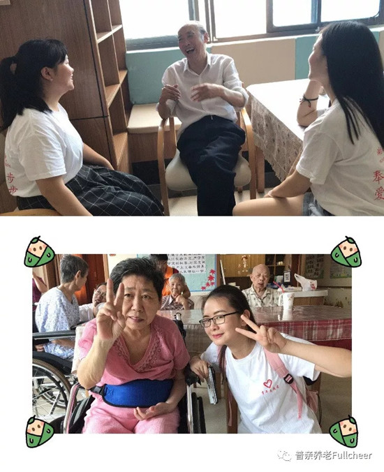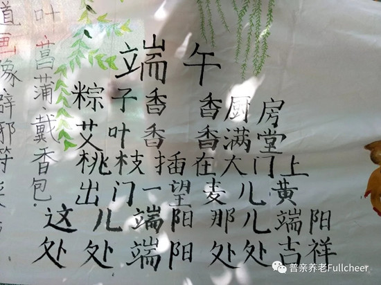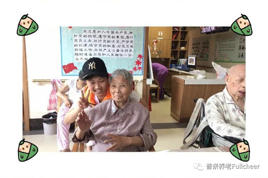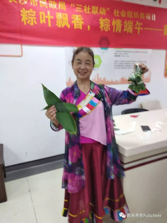 普親老年養(yǎng)護(hù)院同樣開展了一場(chǎng)“快樂頑童,縱情端午”的主題活動(dòng),活動(dòng)邀請(qǐng)到了湖南女子學(xué)院的志愿者們,他們?yōu)闋敔斈棠處砹司实脑?shī)詞朗誦、啦啦操、手語(yǔ)表演、紅歌串燒等,同時(shí)還組織了趣味的端午知識(shí)問答,易爺爺,譚奶奶,袁叔叔就通過知識(shí)問答贏得了端午小禮品,看到老寶貝們甜甜的笑容,“溫暖的是我們這些小寶貝的心�!�
