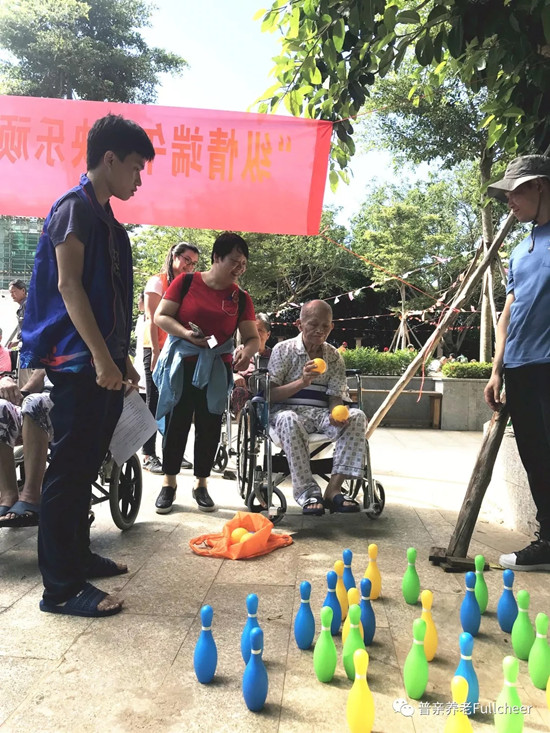 端午節(jié),�?谑衅沼H第二老年養(yǎng)護(hù)院舉辦的第二屆老年夏季運(yùn)動(dòng)會(huì)開幕了,去年沒趕上第一屆運(yùn)動(dòng)會(huì)的爺爺奶奶們?cè)缫呀?jīng)躍躍欲試了,海南熱辣的溫度絲毫沒影響大家的熱情。在志愿者們的幫助下,爺爺奶奶們參加了釣魚、扔沙包、套圈圈、扔飛鏢、撈球、保齡球等項(xiàng)目,每個(gè)項(xiàng)目對(duì)應(yīng)相應(yīng)積分,最終成績(jī)會(huì)根據(jù)積分評(píng)出一二三等獎(jiǎng)。