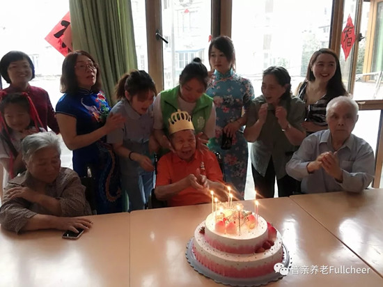 父親節(jié)加上生日會(huì),機(jī)構(gòu)里是老人喜歡的熱熱鬧鬧的景象,大家同唱生日歌,為老人送去祝福。
