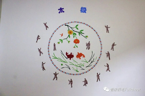 把太極元素融合進(jìn)機(jī)構(gòu)環(huán)創(chuàng)里,也是基于護(hù)理員們對(duì)入住老人有深厚的了解。有的老人熱愛打太極,原先的生活環(huán)境里就布滿各種太極元素,通過環(huán)創(chuàng)的方式為老人創(chuàng)造熟悉的生活環(huán)境,老人就能住得更舒心。