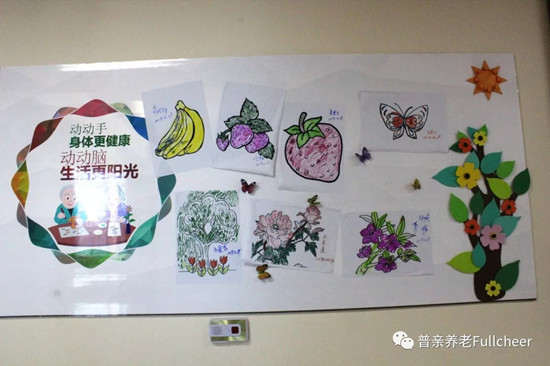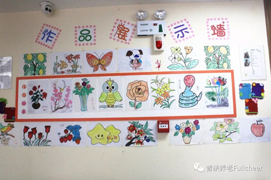 老人的活動(dòng)安排里每周都會(huì)有手工、美術(shù)課,從花草樹木到蟲鳥魚獸,都會(huì)成為課程的學(xué)習(xí)內(nèi)容,優(yōu)秀的作品不僅會(huì)張貼在老人的房間內(nèi),也會(huì)被挑選出來展示在大家常活動(dòng)的公共區(qū)域,增強(qiáng)老人的參與感與成就感,讓老人們知道,他們是這個(gè)家庭的一份子,他還能有所作為!