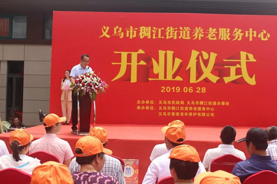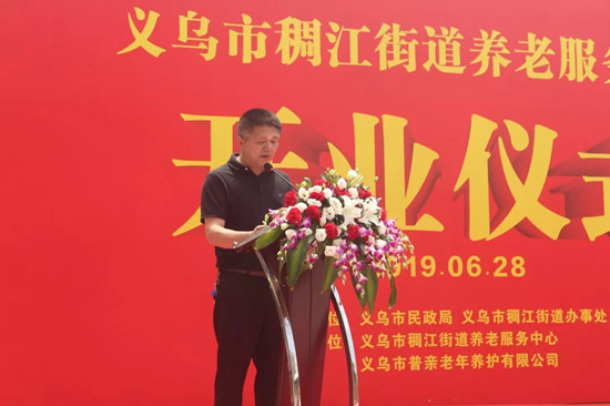 義烏市政府副市長(zhǎng)朱有清宣布普親稠江老年養(yǎng)護(hù)中心正式開(kāi)業(yè)。