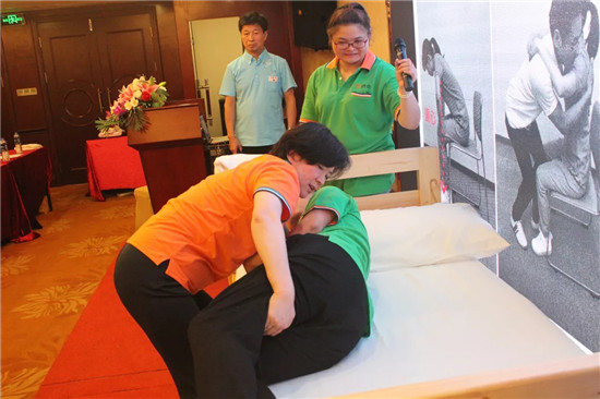 林龍英老師以《減輕介護人員身體負擔(dān)的移動移乘技巧》為題對學(xué)員們進行了專業(yè)移動移乘技巧的培訓(xùn),通過具體的情景設(shè)置,為學(xué)員演示正確的操作方法及背后所蘊含的專業(yè)知識,讓學(xué)員們了解容易發(fā)生的誤區(qū)及可能存在的傷害。