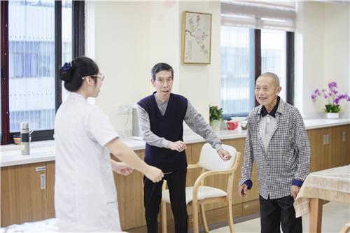 ▲康復(fù)師帶領(lǐng)老人進(jìn)行康復(fù)訓(xùn)練