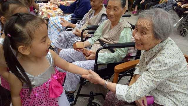 最后的幼兒贈(zèng)餅互動(dòng),將老人與小孩近距離地聯(lián)系在了一起,共同感受過節(jié)的溫馨氣氛。