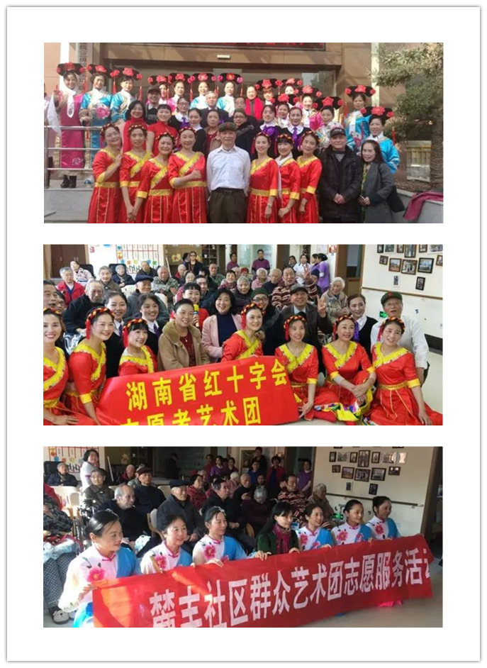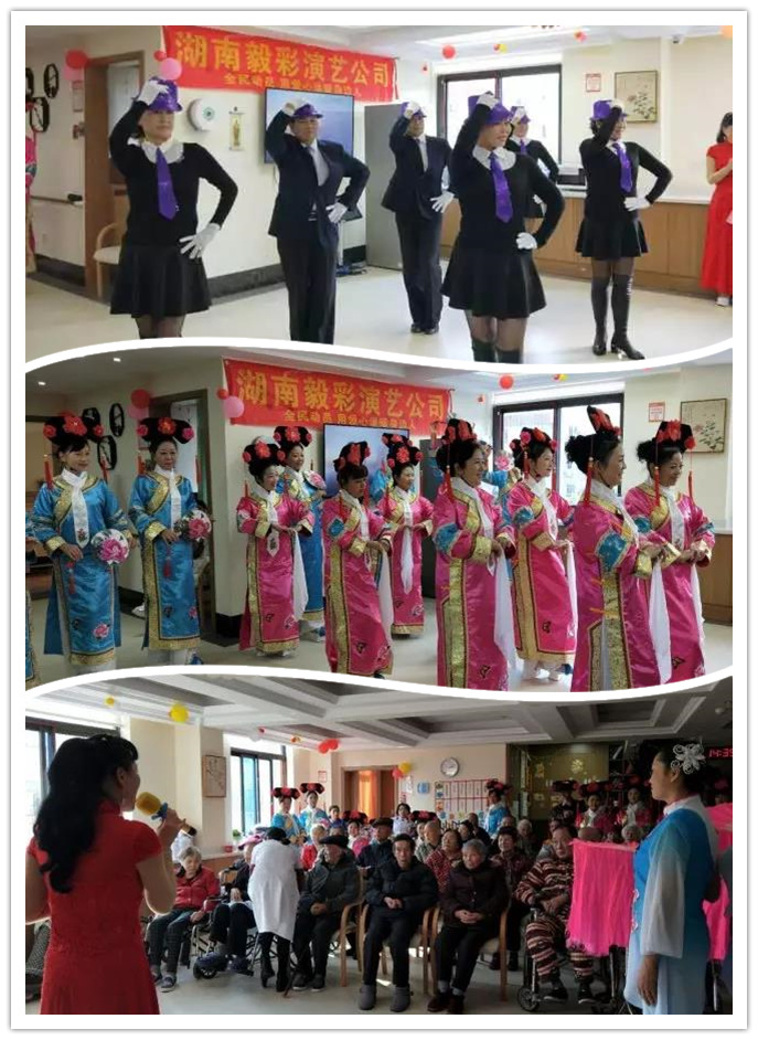 感恩節(jié)當天,位于長沙市東風路的普親老年養(yǎng)護院迎來了湖南毅彩演藝公司和湖南省紅十字會志愿者藝術團的40余位頗具藝術氣息的志愿者,他們?yōu)闋敔斈棠虃儙砹诵问礁鳂拥母栉璞硌荩ú匚�、雙人舞、集體舞、走秀以及尤克里里的表演,為咱們機構的老人帶來了一場視覺盛宴。