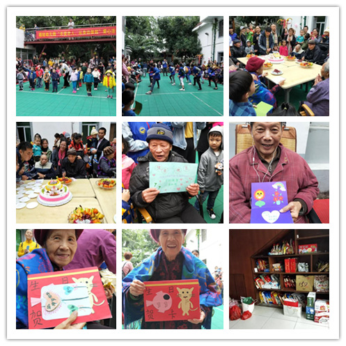 活動中,萌娃們與大學生志愿者帶來了節(jié)目表演,孩子們?yōu)殚L者送上了精心制作的生日賀卡,陪爺爺奶奶們過生日,而老人們看著這些可愛的萌娃和貼心的志愿者,笑容也滿溢心間。