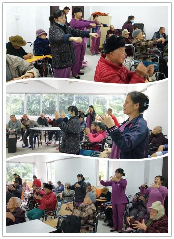 作為長期為普親馮家沖機構提供志愿者服務的一支隊伍,民政老年服務管理學院的小伙伴們早晨8點便來到了機構陪伴老人們,上午和爺爺奶奶們一起制作手工,下午又開始布置長者之家,為爺爺奶奶們的小窩增添了美美的色彩,溫馨感十足,最后自然也少不了為爺爺奶奶們表演經典的手語舞,大家在歡樂中度過了美美的一天。