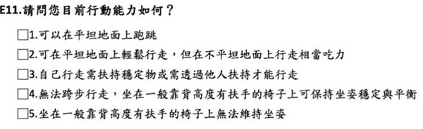 ADL還是用巴氏量表,比較特別的是加入了第11題: