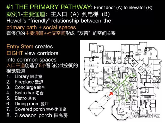在過去的30年中,美國、歐洲的養(yǎng)老設(shè)施建筑的研究慢慢發(fā)現(xiàn),主要通道(從入口到主電梯的這一段)的空間設(shè)計十分重要,如果能夠做得比較友善,會利于人們對建筑形成友善的印象。