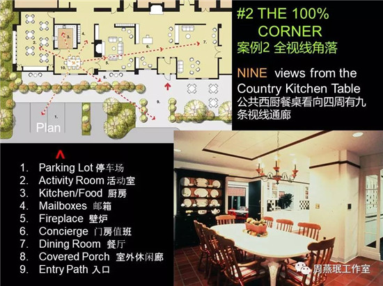 像這樣一種既能夠為觀察者提供一些視覺上的保護(hù),又能夠鼓勵他們?nèi)ミh(yuǎn)眺景色而又不顯眼的眺望區(qū),對老人來說非常重要。這個是我覺得能夠提升社會交往興趣和相互遠(yuǎn)觀關(guān)注度的做法。