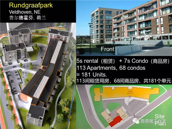 這個項目就是引出我今天要講的一個重要方面——生活模式,荷蘭公寓樓的生活模式。這個模式強(qiáng)調(diào)的就是,其實很多老人不需要入住護(hù)理院的,絕大多數(shù)通過這樣的專門設(shè)施,實現(xiàn)就地養(yǎng)老是最理想的。這個項目時間很久了,是90年代在荷蘭鹿特丹的項目,項目本身就是采用這樣一個概念,老人可以就地老化,不要再搬出去了。這個項目居室情況是很有特點(diǎn)的,首先是為終身生活而設(shè)計,面積非常大,可以個性化的進(jìn)行裝飾,很多老人在里面裝了非常多的書、收藏品等等。另外還有小的房間是給訪客居住使用的。