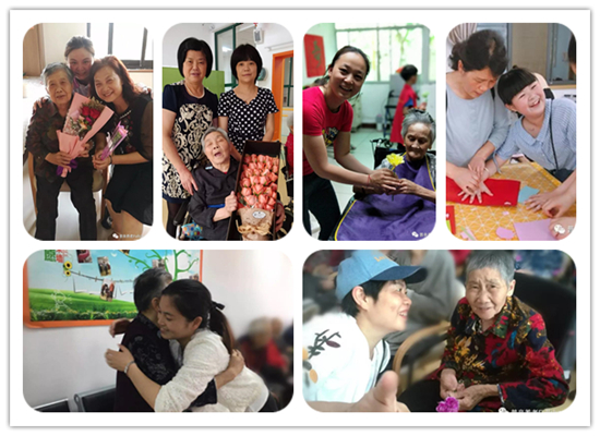 在母親節(jié)到來(lái)之際,入住老人的子女紛紛來(lái)到機(jī)構(gòu)探望自己的母親,為母親送花,和母親聊天,給母親一個(gè)擁抱。