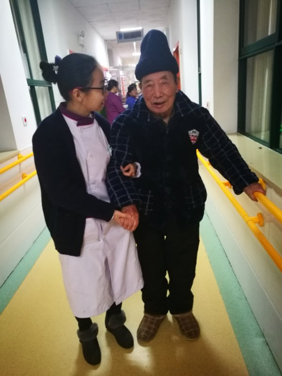 在先鋒養(yǎng)護(hù)中心,老人們都喜歡喊她“好孫女”。“好孫女”生于80年代末,是正當(dāng)青春的好年紀(jì),俊秀的臉龐搭配一副黑框眼鏡,書卷氣十足;她個(gè)頭小小,卻總是朝氣蓬勃,仿佛永遠(yuǎn)有用不完的精力;更美好的是,在自己芳華歲月里,她選擇與老人為伴,做一名青春養(yǎng)老人。