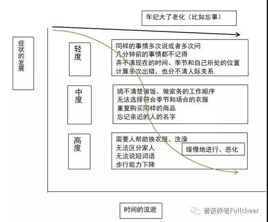 認知癥伴隨病狀的發(fā)展,老人后天習(xí)得的知識和社會規(guī)則等會從最新的部分而不是以前的部分開始慢慢遺忘。